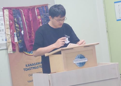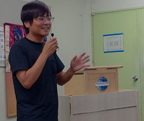 中でも、神奈川クラブの常連ゲストであるKHさんは、トーストマスターズの日本チャンピオンという実力を見せつけました。「肝試し」というお題を巧みに「男子の下心」へと変え、聴衆に若かりし頃の心境を思い出させて大爆笑を誘い、この日一番の拍手を浴びました。